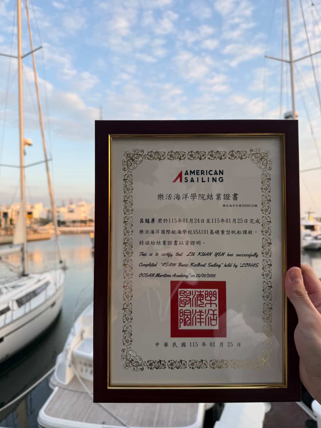 我拿到 ASA101 帆船入門課程的證書啦🍾